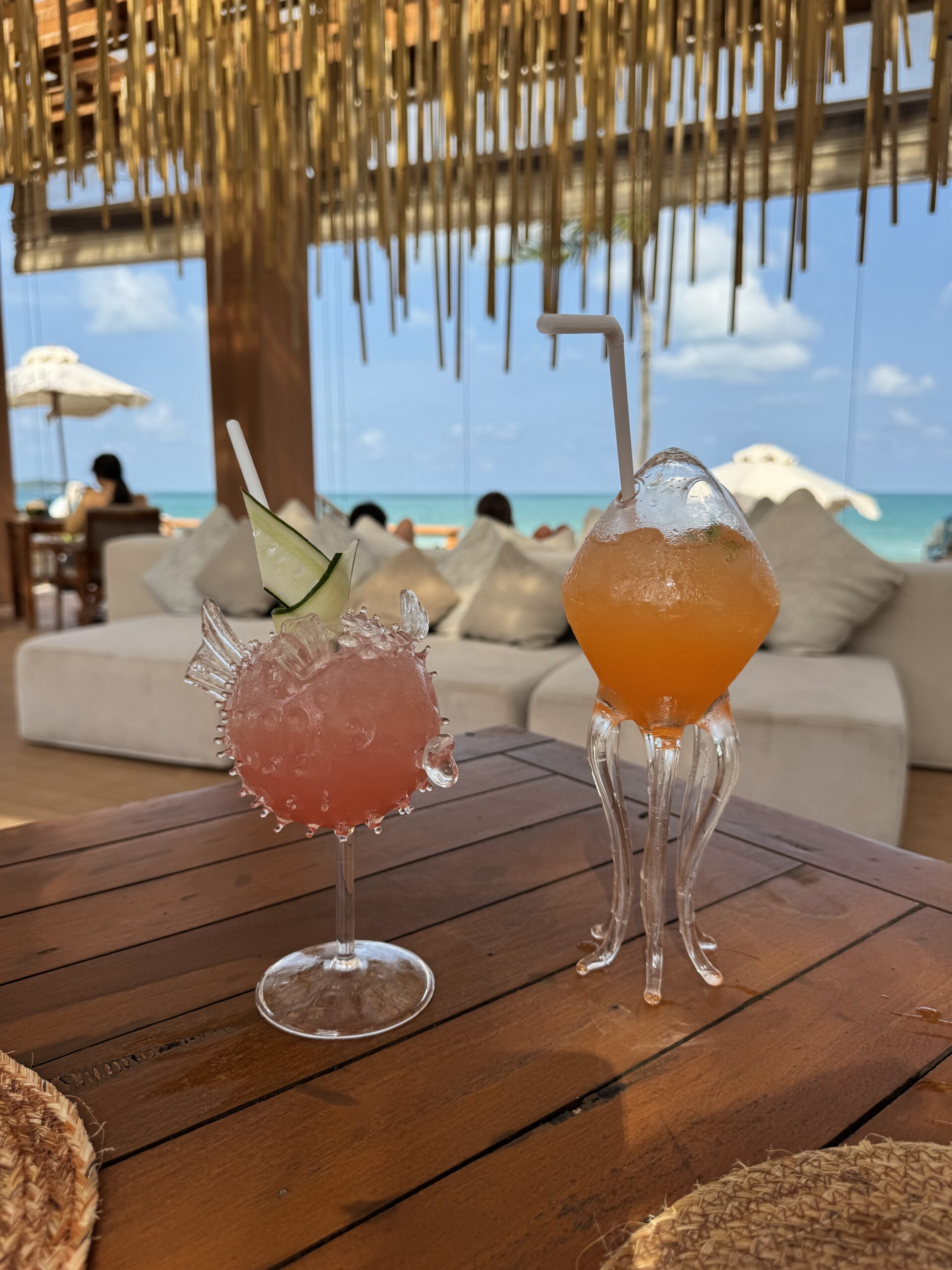 Then, in the afternoon, I would recommend getting lunch at Salt Society, which is a beautiful restaurant right on the beach front in Chaweng. This was honestly one of the prettiest restaurants I have been to. They serve great food and amazing cocktails in these cool sea creature-shaped glasses. This is on the more expensive side, but you can just go in for drinks if you want. Then spend the rest of the afternoon relaxing on Chaweng beach. This is a really pretty beach with white sand and really blue water. There are also options for watersports along the front.