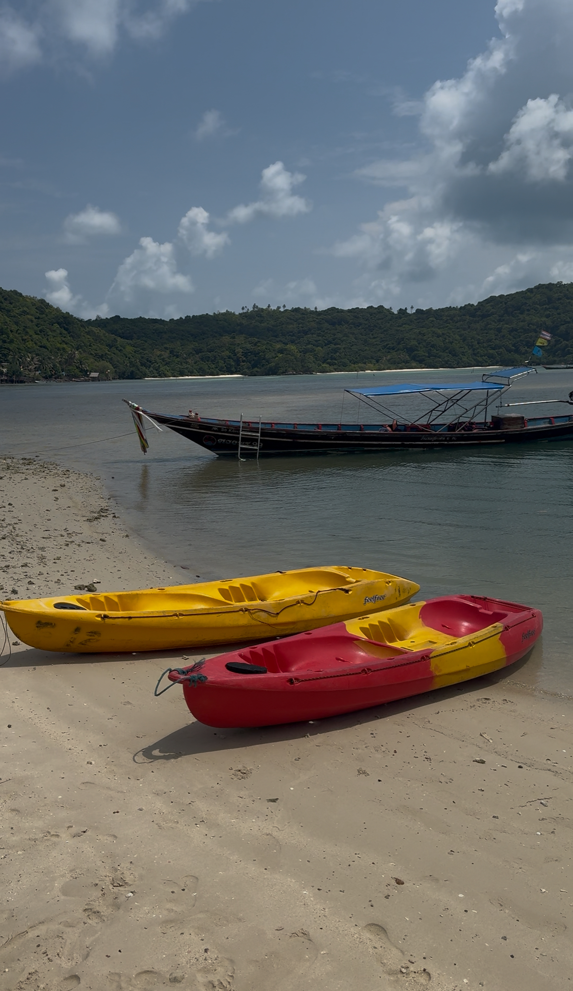 This is the option I chose because I absolutely love animals, and I was so glad we went. We booked the small group trip with GetYourGuide, which I will link below. The first island is Madsum Island, which is the one with the free-roaming pigs. This was a really great stop if you love animals, but make sure not to pick up the pigs. We saw this quite a lot, which was really sad as they were getting stressed out. They are there to look at and be near, not to hold. The next stop on the trip was a snorkelling spot, and then the final island, where you have lunch, which was a traditional Thai lunch. That was amazing, and then you have some free time to go kayaking and relax on the beach. This felt really private; there was no other trip there other than ours when we went.